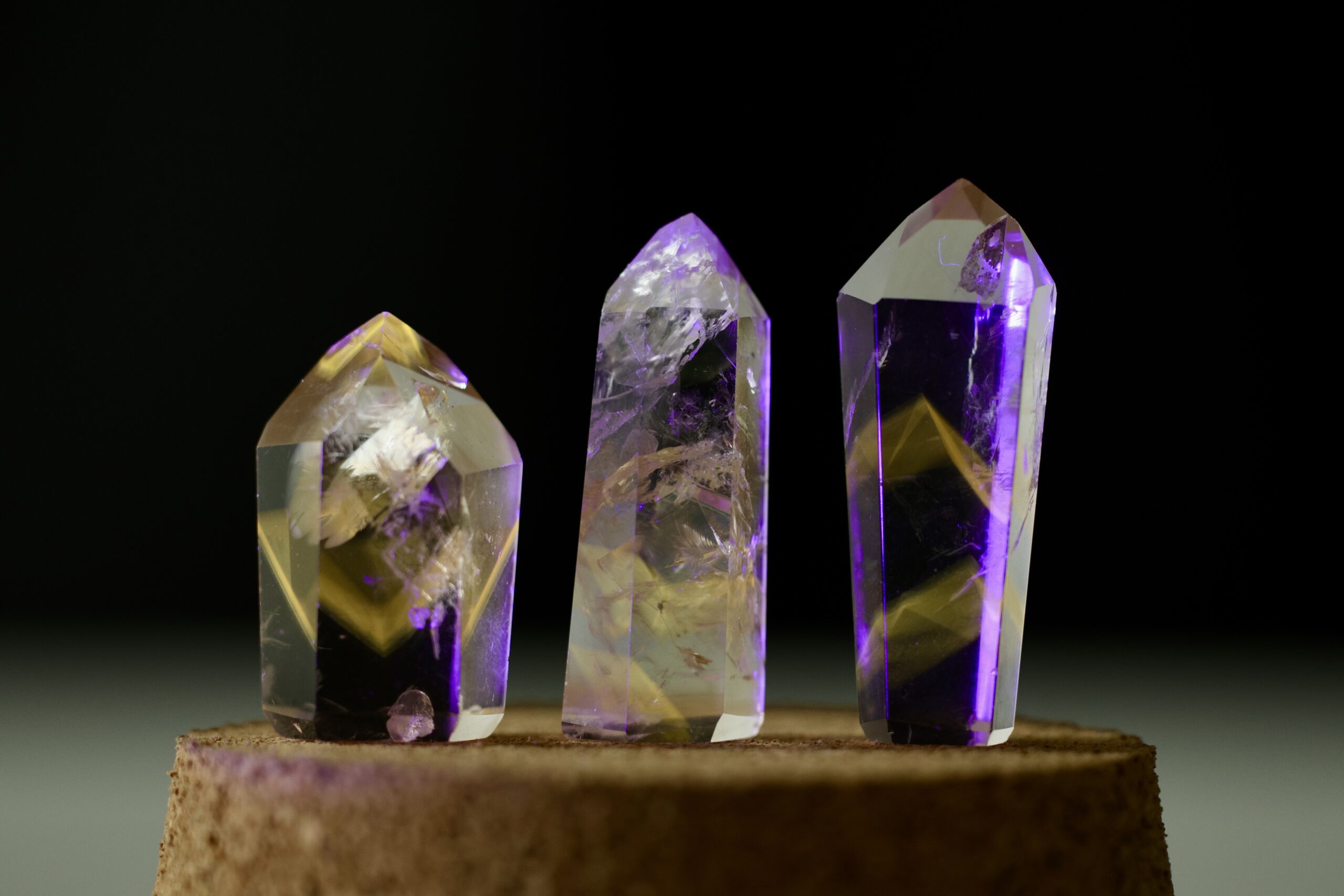 Associada ao Quartzo de Ametista, essa atuação ganha ainda mais profundidade. O Quartzo estrutura, a Ametista refina e a Powellita revela. Juntas, essas três camadas constroem um campo onde clareza, sensibilidade e manifestação se encontram, não como forças isoladas, mas como partes de um mesmo processo de maturação.