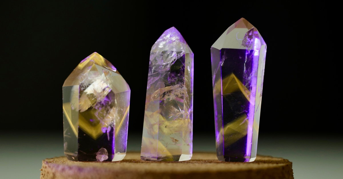 O Quartzo, base desse conjunto, cristaliza a partir de soluções ricas em sílica em ambientes hidrotermais, crescendo lentamente ao longo de cavidades e fraturas. Em determinados contextos, a presença de ferro em sua estrutura, combinada a processos naturais de irradiação, dá origem à coloração violeta da Ametista. Esse já é, por si só, um marcador de condições muito específicas de formação.